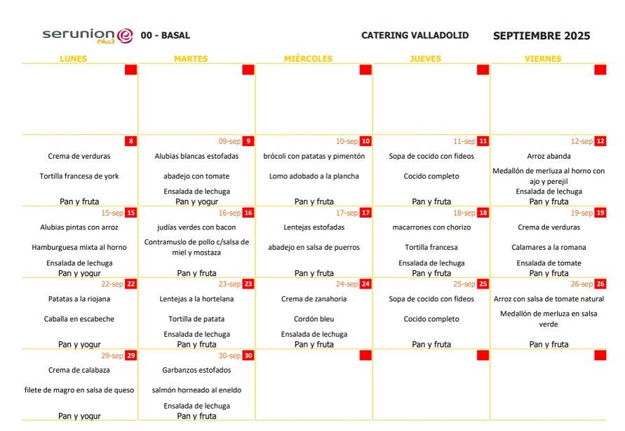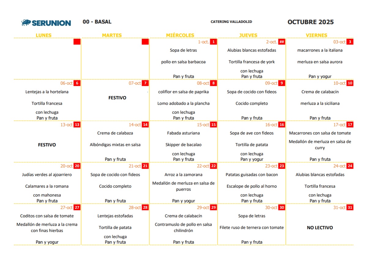 El comedor escolar depende de la Junta de Castilla León y la empresa que lo gestiona es SERUNIÓN